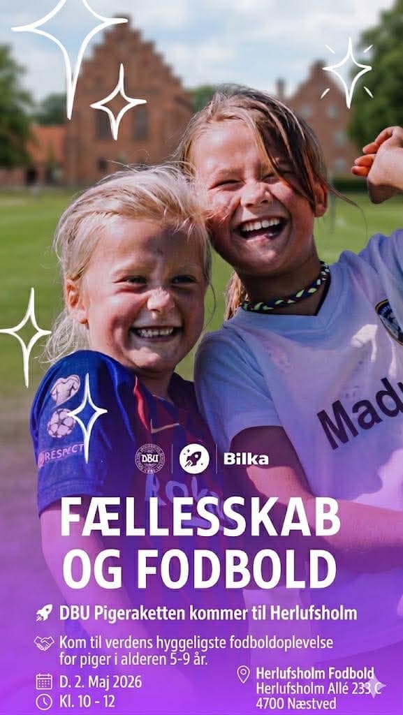 Lørdag den 2. maj får Herlufsholm Fodbold besøg af DBU’s Pigeraketten, og vi glæder os rigtig meget til at byde piger og familier velkommen til nogle sjove timer med leg, bevægelse og fodbold.